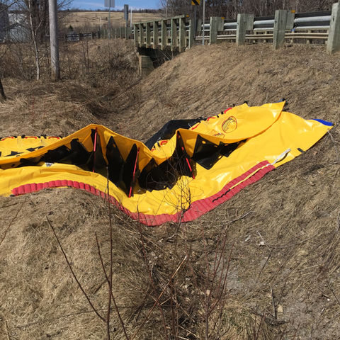Water-Gate también se puede utilizar como un dique de desbordamiento para hundir los contaminantes sin afectar su integridad. Nuetras barreras se adaptan solas a todo tipo de superficies y bases de ríos siguiendo reglas básicas. Debido a su increíble flexibilidad, la barrera anti derrames se adapta cómodamente en los bancos de ríos y bases de cursos de agua sin importar el tipo de terreno que sea. No es necesario ningún tipo de anclaje o bomba de agua. Cuando Bomberos u otro tipo de equipos de respuesta a la emergencia utilizan una represa para suministrar agua en pequeños cursos de agua, el rebalse no afectará a la instalación y las compuertas de liberación pueden mantenerse abiertas para proveer un mínimo de flujo de agua y no afectar al hábitat.